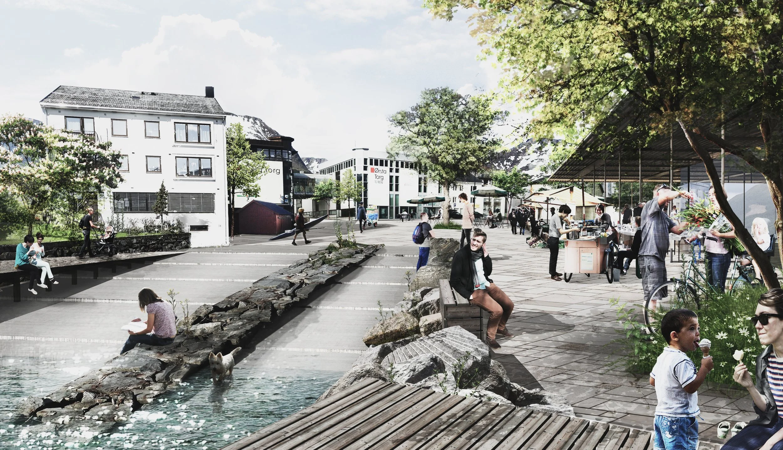 Ørsta er en by fyldt med stærke lokale miljøer – små øer, der fungerer hver for sig, men ikke som en samlet helhed. Vores projekt tager fat i netop denne udfordring: at skabe klare forbindelser og nye identiteter, der binder byen sammen på tværs.