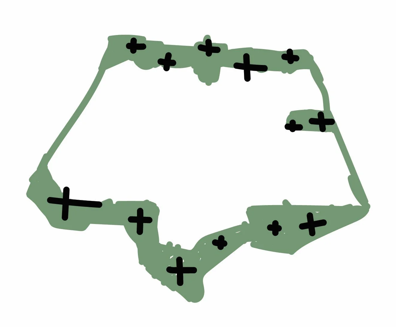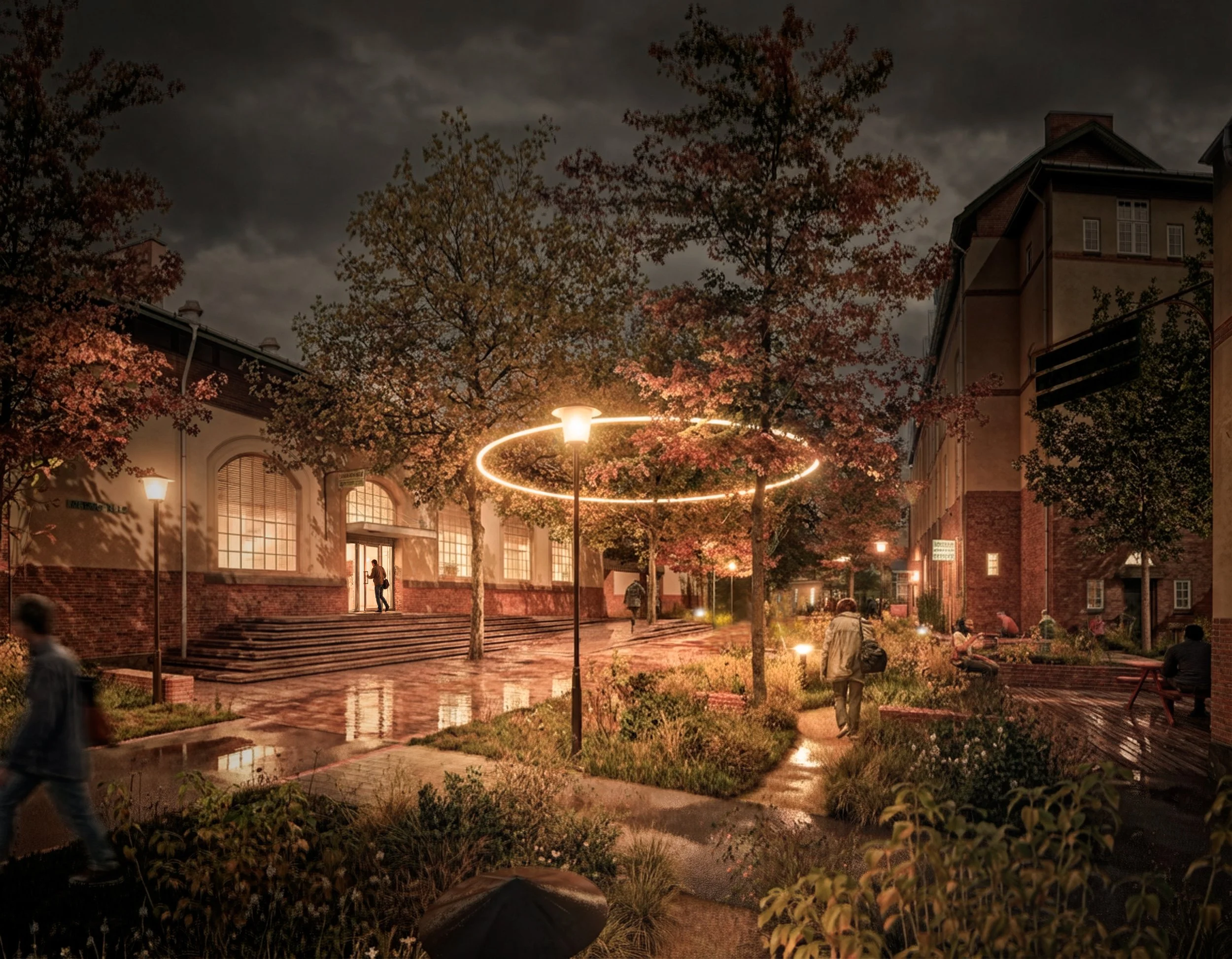 Kantzoner, sigtelinjer og gradueringer af ophold skaber differentierede rum – fra fælles pladser til mere tilbagetrukne steder – så fællesskab kan vælges til, men aldrig påtvinges.